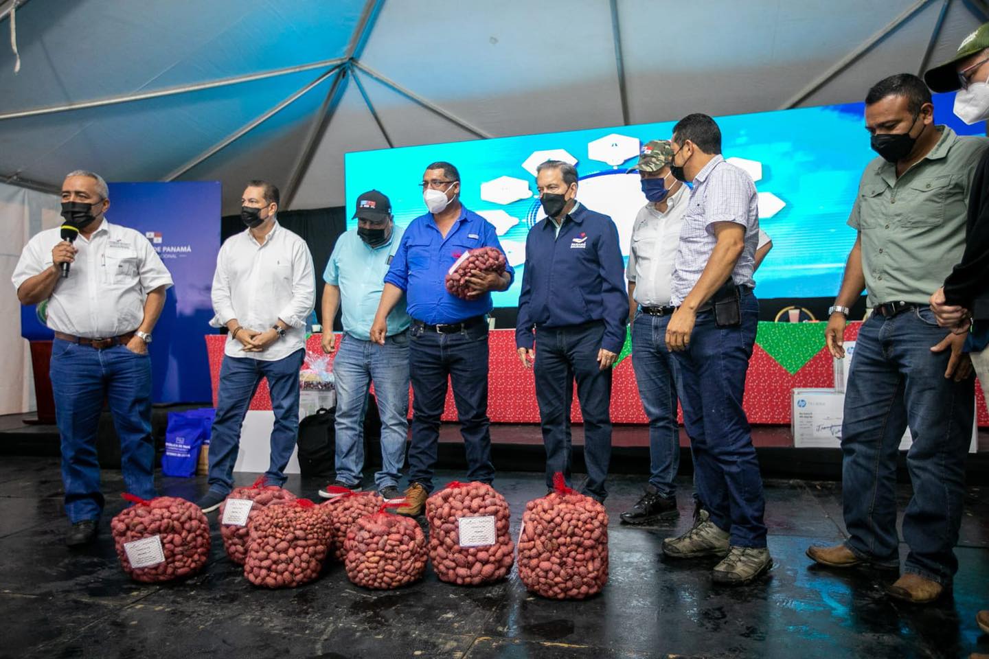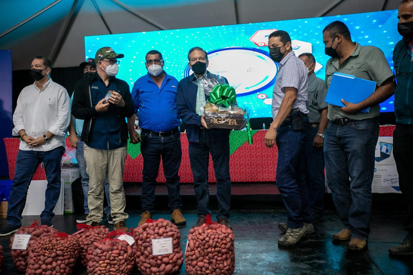El productor de Tierras Altas, Juan Caballero, recibe para la asociación de multiplicadores de semillas de papa 5,500 mini tubérculos de semillas de papa variedad del IDIAP del Señor Presidente @nitocortizo y el Director General del IDIAP Arnulfo Gutiérrez en la Gira de Trabajo Comunitario Presidencia Panamá.