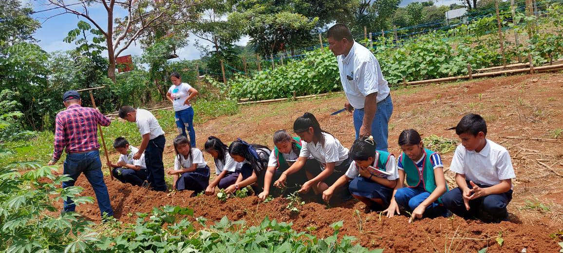 En el huerto escolar los estudiantes hicieron la práctica de siembra con la asesoría de los técnicos del IDIAP y del MIDA y el acompañamiento de los padres de familia.