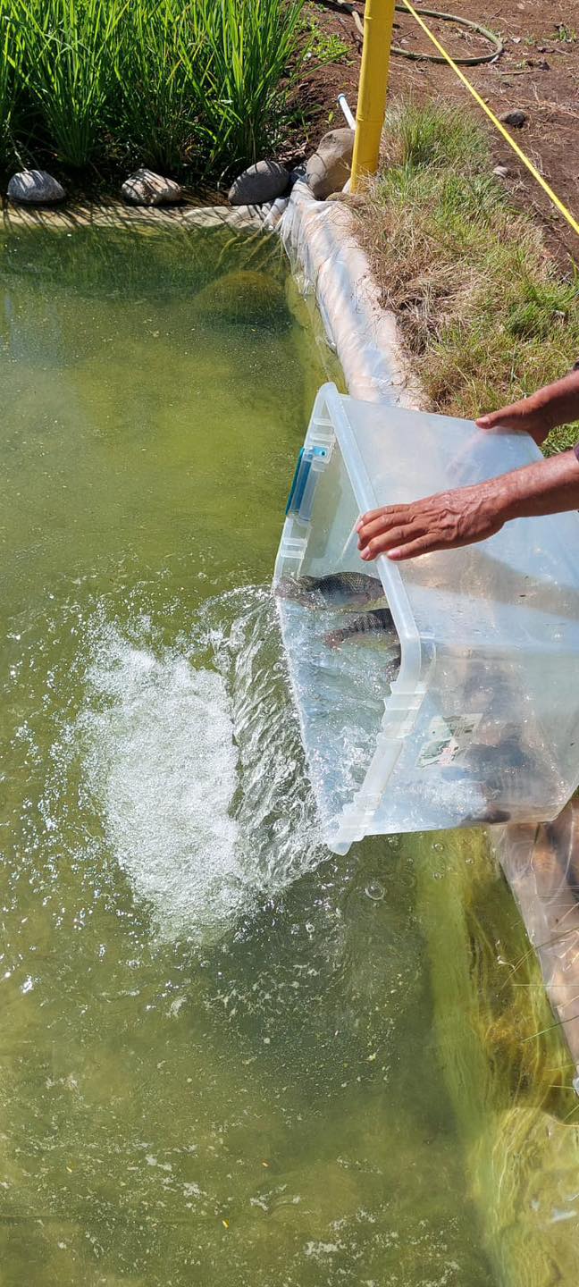 Con el apoyo de la ARAP y del productor acuícola Juan Diego Batista, de la comunidad de Solano, distrito de Bugaba, se logró incorporar tilapias para complementar el sistema y mostrar al público una alternativa diferente de producción.