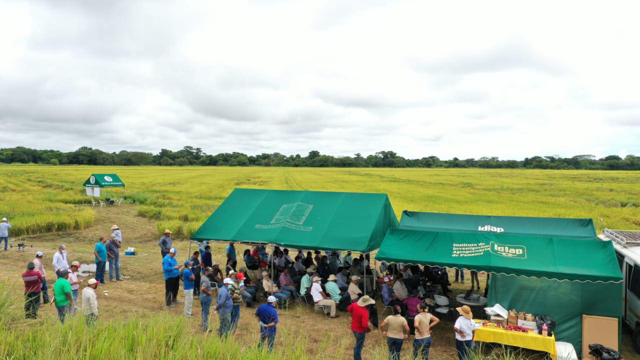 Con participación de productores de Chiriquí, Coclé, Panamá Este (Torti), técnicos del sector agropecuario estatal y técnicos de casas comerciales. En este evento, se presentaron los resultados del manejo tecnológico de la variedad IDIAP FL 069-18 cultivada en 46 has del año 2021 y las evidencias de las actividades de entrenamiento de los técnicos del sector arrocero que participaron en 8 demostraciones de métodos en diferentes momentos fenológicos del cultivo por parte de la Dra. Evelyn Quirós.