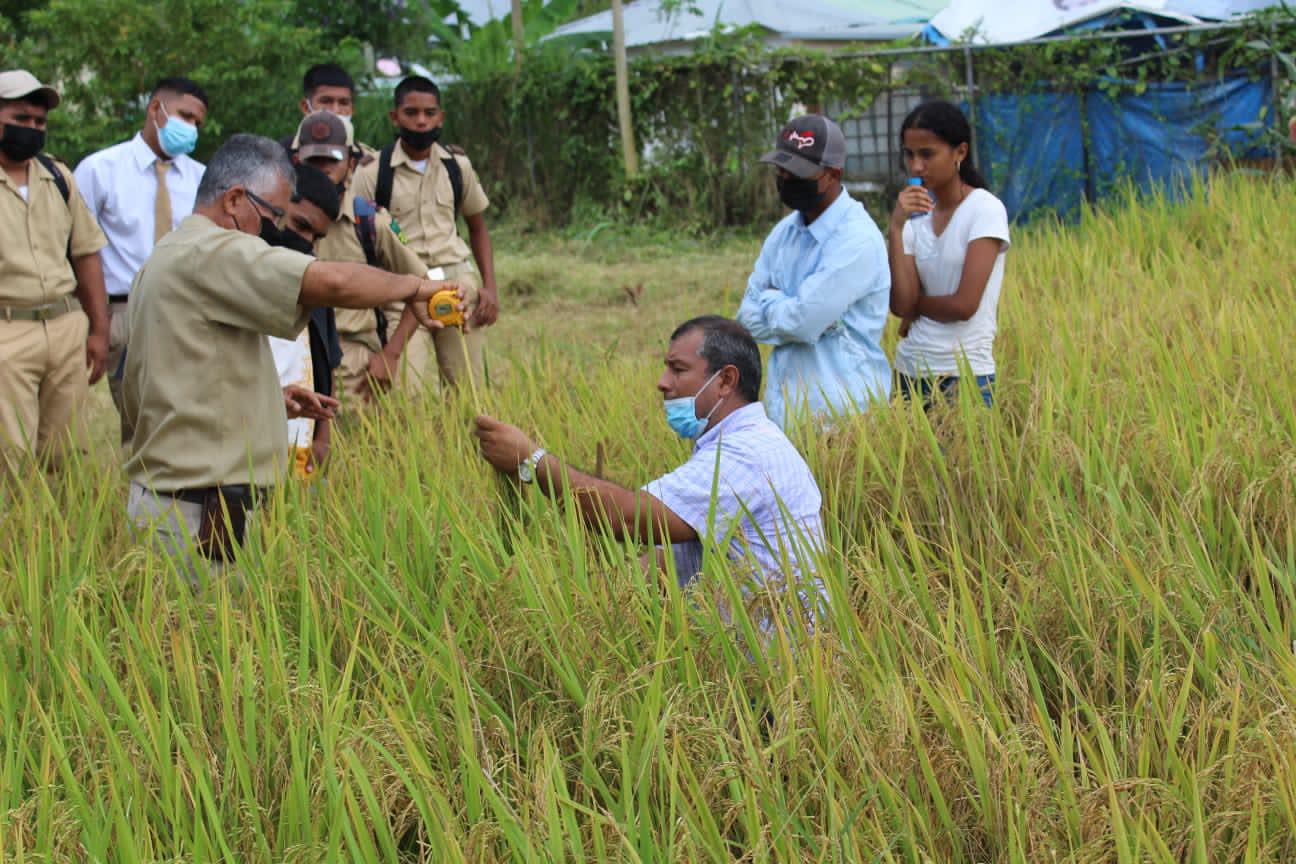 CIAOR – Tanara Chepo | Con el tema Validación y Difusión del Sistema Intensivo del Cultivo de Arroz (SICA), el Instituto de Innovación Agropecuaria de Panamá (CIA-Oriental) realizó un día de campo en las parcelas demostrativas del Colegio Agropecuario del IPT México – Panamá. El objetivo de la actividad fue capacitar a los participantes sobre los tipos de enfermedades que afectan al cultivo de arroz, se les explicó el proceso del establecimiento de la actividad, desde sus inicios como la preparación del terreno, uso de semillas sanas y la variedad IDIAP-FL 069-18, confección del semillero, su manejo orgánico, la instalación del sistema de riego para su nivelación en húmedo, el componente de marcación y densidad de siembra de planta/golpe a un espaciamiento de 25×25 cm, prácticas de manejo agronómico, deshierbe y fertilización. Posteriormente a la explicación, se procedió a la toma de datos de las variables agronómicas y de rendimiento del cultivo marcando la parcela para la toma de muestra.